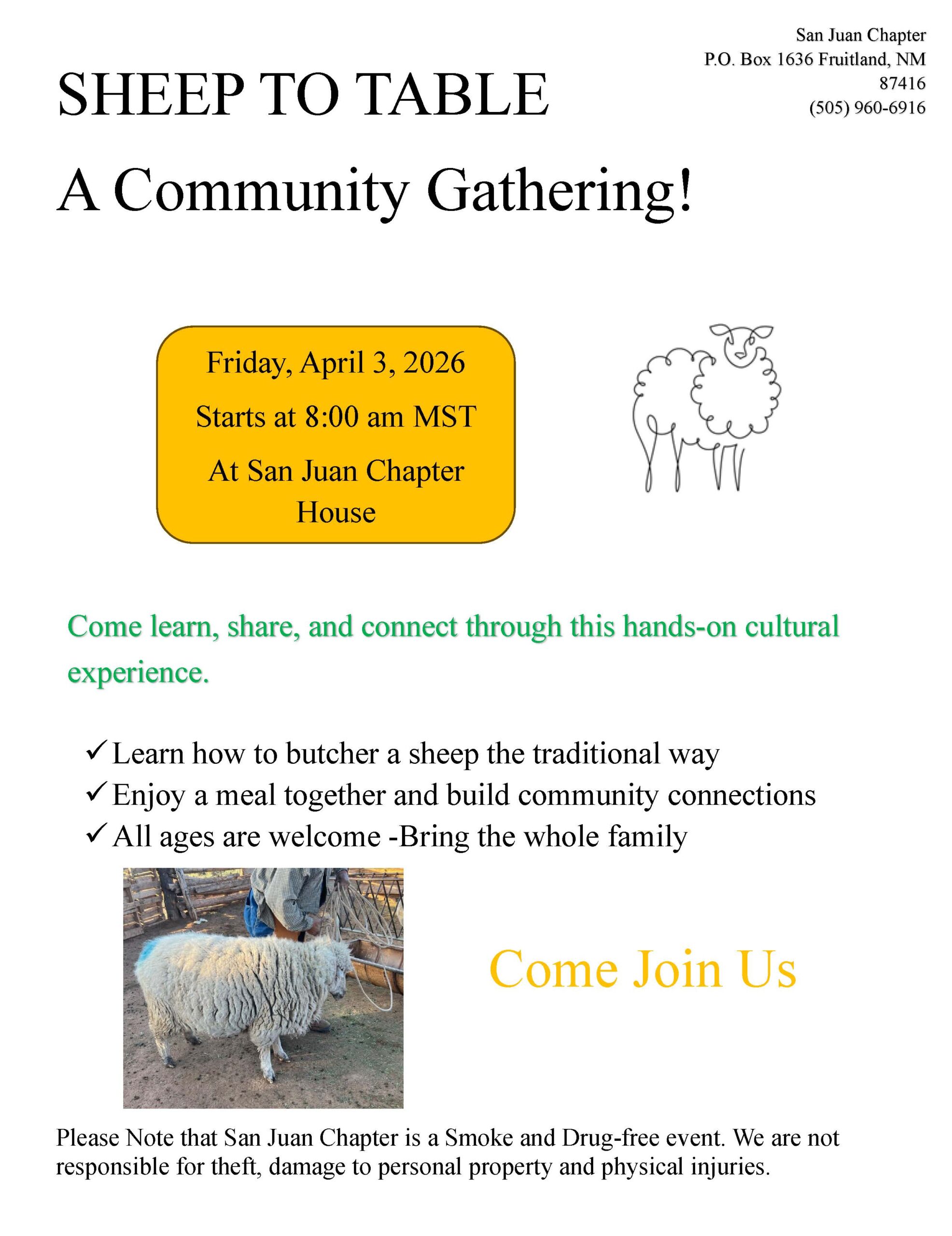 - Friday, Feburary 20, 2026; 9:00 am MST Grazing Permittee Meeting: Here at San Juan Chapter